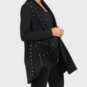 Jospeh Ribkoff US 8 Coat Cover Cardigan Open Front Swing Gold Studs Stretch