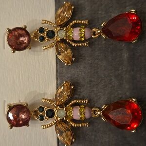 Elegant Josslyn earrings with red and gold accents. Perfect for a bold statement.
