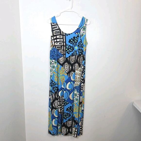 Jostar Blue Multicolor Sleeveless Mixed Media Artsy Maxi Dress Size Medium