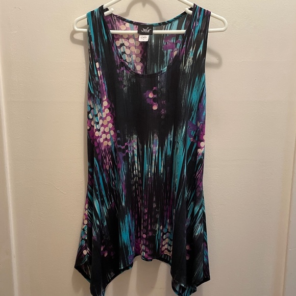 Sleeveless made in USA size medium geometric print polyester/spandex top. EC