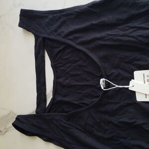 Joteisy Solid O Neck Sleeveless Back Strap Tank Mini Swing Dress Black Size M