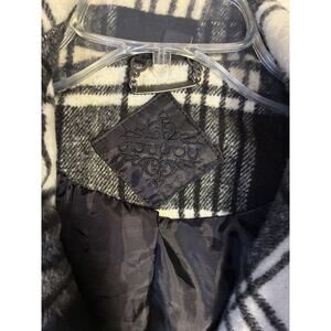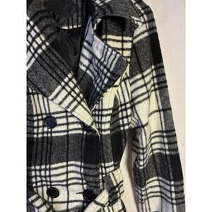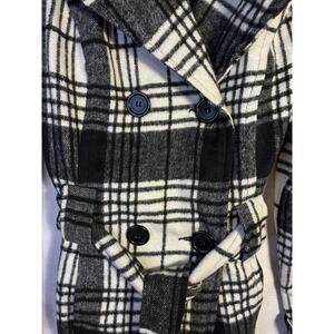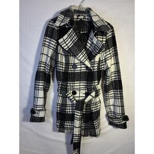 Jou Jou Womens Belted Coat Small Double Breasted Black White Plaid Buttons Lined