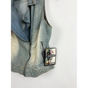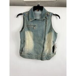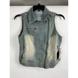 Jou Jou Womens M Distressed Motorcycle Denim Jean Vest Blue Zipper Detail NEW.