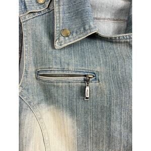 Jou Jou Womens M Distressed Motorcycle Denim Jean Vest Blue Zipper Detail NEW