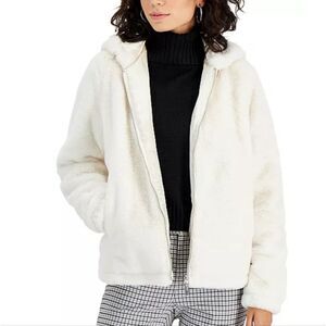 Experience ultimate comfort and style with the Jou Jou White Teddy Jacket. This cozy outerwear features a plush faux fur texture and a convenient full front zipper closure. The hooded design and relaxed fit make it perfect for chilly days.
