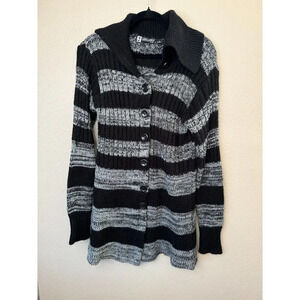 JouJou Black/Gray Long Cardigan Size 1X, long cardigan, striped cardigan,