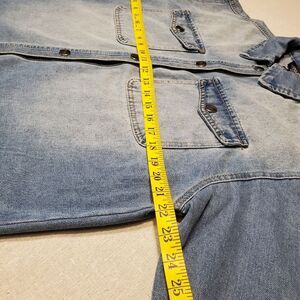 This denim shacket is new with tags. Size Small. Has metal snap buttons.