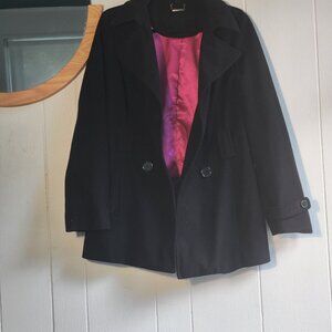 This Pea Coat is perfect for fall weather, Not too heavy for shopping and trips around town. Side Pockets too, fully lined. Sz L.