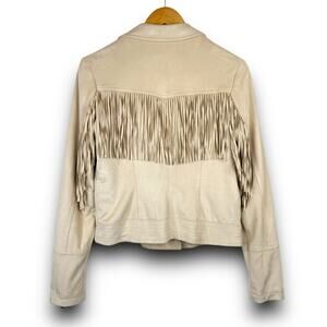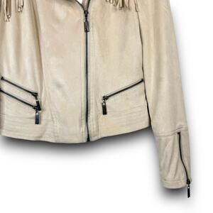 JouJou Faux Suede Western Fringe Moto Jacket Zippers Lined Cream Ivory Medium
