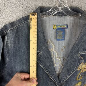 JouJou Jean Jacket Women’s XXL Butterfly Embellished Denim Button Front Blazer