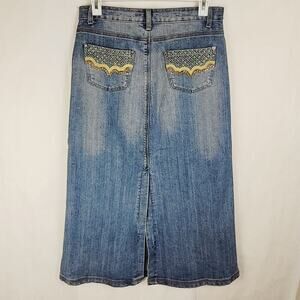 JouJou denim maxi skirt size 12 Embellished pocket back slit Y2K Retro Western