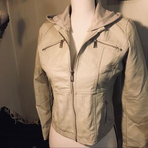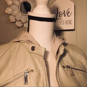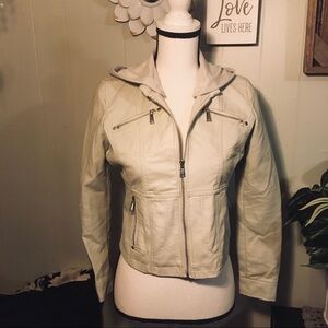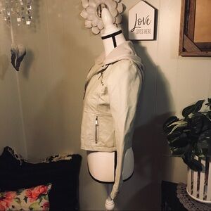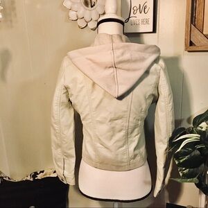 Ivory cream long sleeve zipper front and pocket. Jersey detachable hood. Cute and sassy. Gently preowned condition.