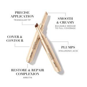 Just a click of a button gets you instant on-the-spot coverage. This concealer pen's clean, creamy, buildable formula brightens skin, smooths your complexion, and conceals dark under-eye circles and imperfections. A triangular tip reaches corners of lids and around nose easily. Adapted for those with disabilities. Plastic click pen with cap.