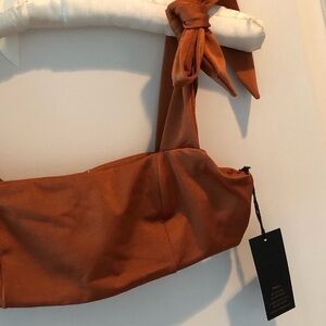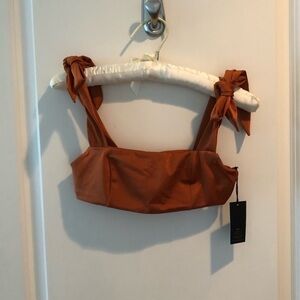 It features a bandeau es que Top that has a thick strut that can either be tied in a bow or in a knot to create an unforgettable look.