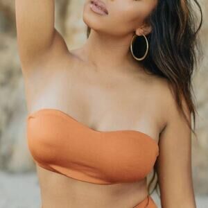 Joues de Sable xRevolve Brown Sugar Vaia Bandeau Top, Size XS & NWT) is a swimwear staple that every girl needs to have in her closet! This bandeau provides just the right amount of coverage and support without compromising the serious heat that this top brings!