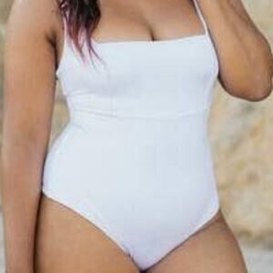 JouesDeSable xRevolve Sz Small New with Tags Ashley Pearl White is a stunning one piece that perfectly shapes your body into an hourglass, features a rectangular neckline w/thick straps and a cheeky finish, can be worn as a swimsuit or as a bodysuit and Straps can be worn on or off the shoulders. Joues de Sable means "Sandy Cheeks" in French, is made for the everyday woman who loves a suit that possesses the perfect amount of luxury and comfort, while feeling beautiful & confident. 82% Polyester, 18% Spandex