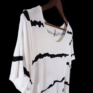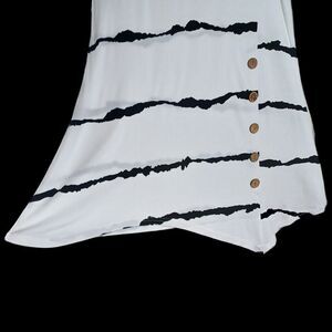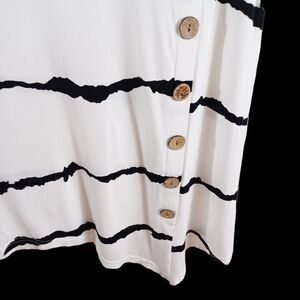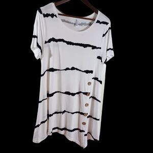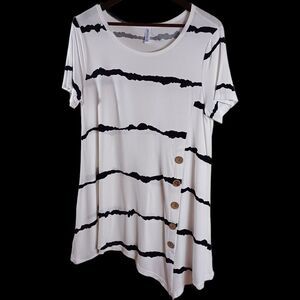 Jouica Assymetrical White Black Striped Short Sleeve Soft Tunic Button Detail XL