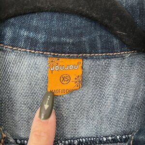 Joujou Size XS Distressed Light Blue Denim Jacket Button Front Pockets Stretch