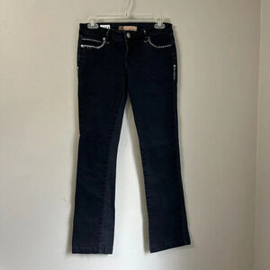 Joujou Womens Black Bootcut Jeans 7/8 Medium Wash Embroidered Paisley Pockets