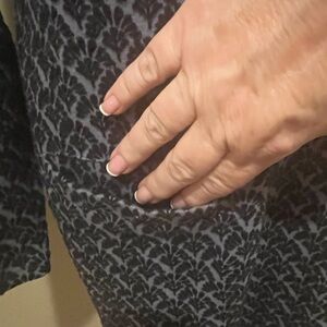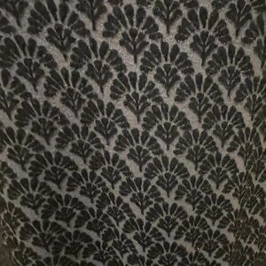 Elegant dress with intricate black and gray patterns. Long sleeves for versatile wear.