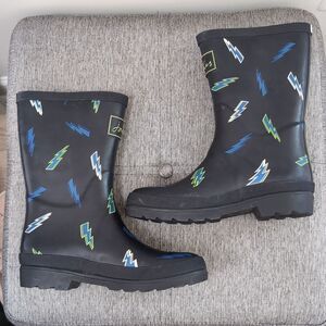 Joules Black and Blue Lightening Rain & Snow Boots Sz 4
