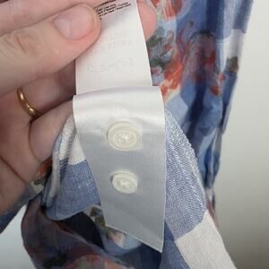 Joules Blue 100% Linen Gingham Floral Long Sleeve Button Up Shirt Size 8