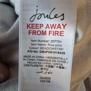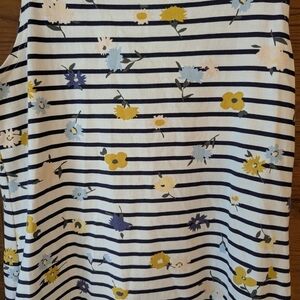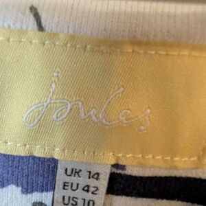 This Joules sundress features a lively blue and white stripe design with charming yellow lemon accents. The sleeveless cut and crew neck provide a relaxed fit, perfect for casual summer days. Its playful pattern and fresh colors make it a delightful choice for warm weather outings.