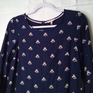 Joules Dress Women 2 Half Bell Sleeve Gardenia Bees With Heart Blue White