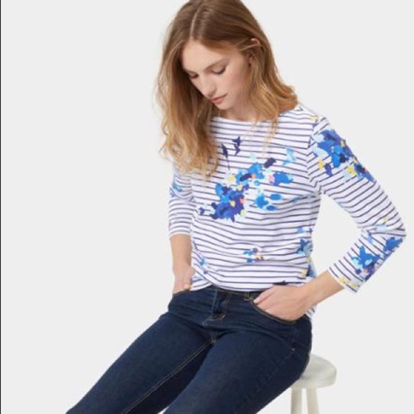 Joules Harbor Print Jersey Top in Multi Flo Stripe Size 2