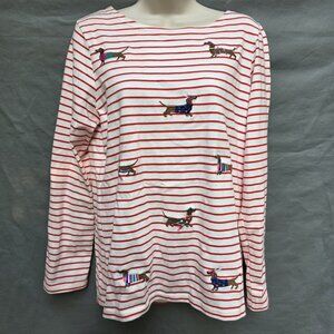 Joules Harbour Luxe Dachshund Embroidered Christmas Shirt Top Blouse Size 8