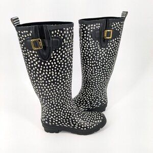 Joules High Knee Rain Boots Women Size 9 Welly Print Geometric Whimsical Country