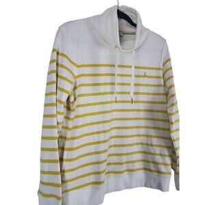 Joules Hooded Sweatshirt 6 Womens White Yellow Striped Long Sleeve Cowl Neck