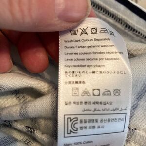 Gorgeous black and white striped sturdy cotton. Pretty hot pink strawberries across front and back shoulders. Brand name embroidered on center of back. Brand logo on side by hip. Never worn no flaws. Ooh La La! All cotton. Pit to pit 18.5” shoulder to hem 25” front, 26” back. Not stretchy tight weave and new never washed.