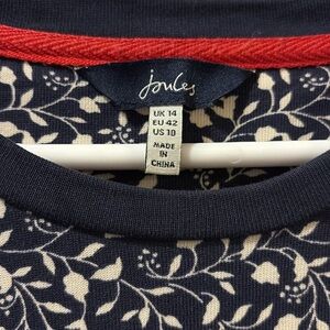 Joules Navy and Cream Floral Tshirt dress - size 10 - 3/4 sleeve 100% cotton
