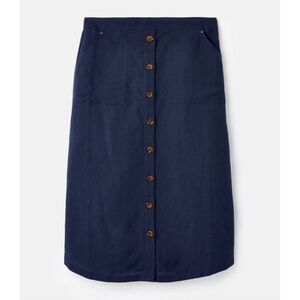 Joules Orielle Solid Woven Skirt With Patch Pockets In Navy Size 10