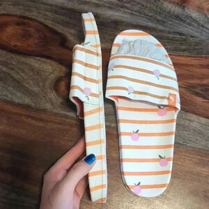 Joules Printed Pool Slide Sandals Poolside White Apple