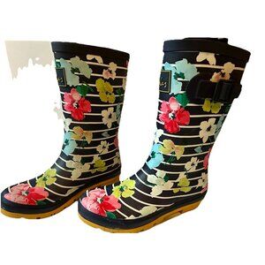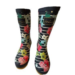 Joules Rain Boots Mid Calf Molly Welly Stripe Floral Size US: 8 UK: 6