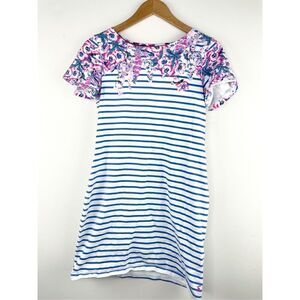 Joules Riviera Printed Dress With Short Sleeves - Blue Floral Stripe Size 6