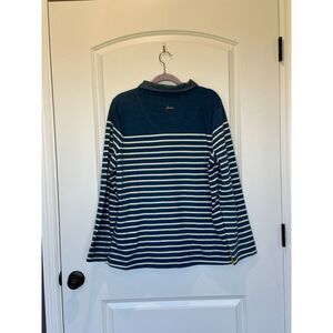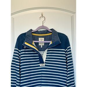 Joules Saunton Salt Blue and Cream Striped 1/4 button Sweatshirt Size 14