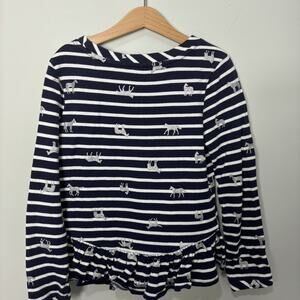 Navy striped top from Joules. All over silver sparkle horses. Size is 7-8, EUC.