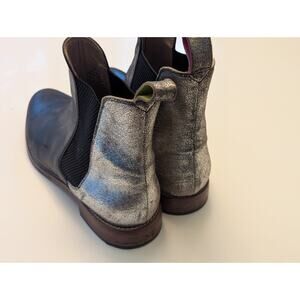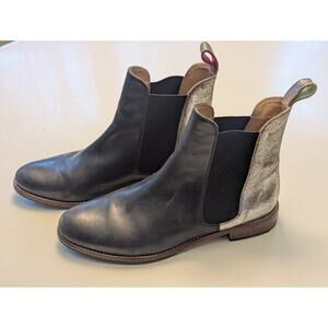 Joules Westbourne Premium Leather Silver Sparkle Metallic Black Chelsea Boots 8