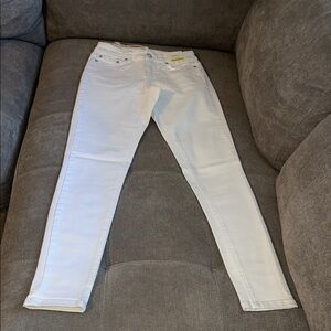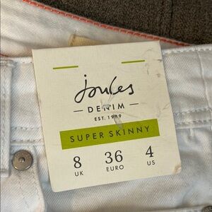These Joules white skinny jeans offer a sleek and modern fit, perfect for any occasion. Crafted from solid color denim, they provide a clean and polished look. The full-length design ensures a flattering silhouette from waist to ankle.