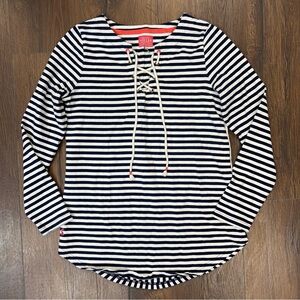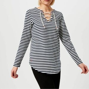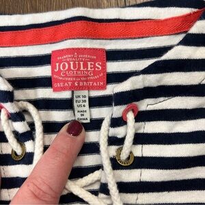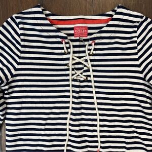 Joules Women's Lacey Lace Front Sweatshirt - French Navy Stripe SZ 6