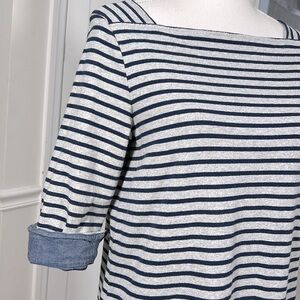 Joules nautical stripe cotton dress womens size 8, coastal chic weekend dress, casual boatneck stripe shift dress, breathable cotton resort wear, blue and white striped dress with pockets, quiet luxury casual cotton dress