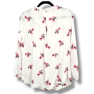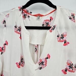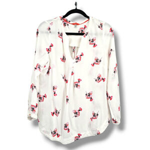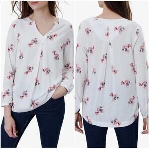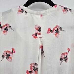 Joules Women's Split Neck Floral Curved Hem Blouse White Pink Size 8