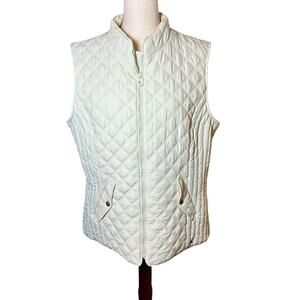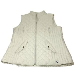 Joules Womens's Quilted Ivory Vest Gilet Pockets Sz 14 Preppy Equestrian Puffer