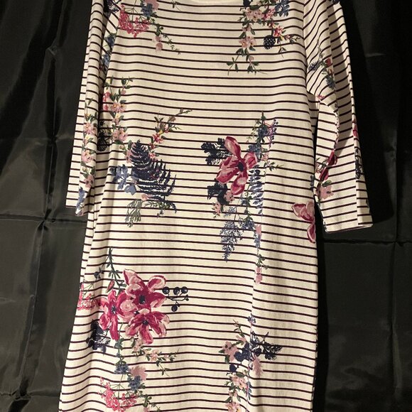 Joules white black stripe floral print tee dress 100% cotton 35" length 3/4 sleeve never worn