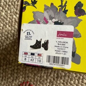 Joules women’s Black Boots with Pink Bee Design