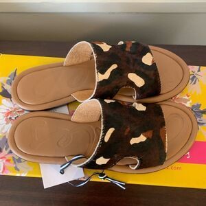 Joules Avondale boho chockleoprd leopard print slip-on Leather sandal size 5