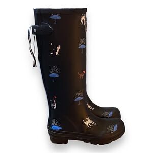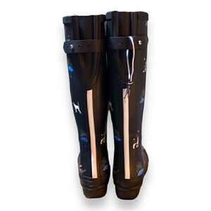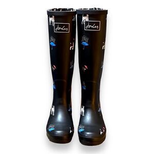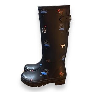 Joules Black Rain Boots, Rare! Women’s, Size 5. Dog, Cat and Umbrella Design. NWOT, EUC